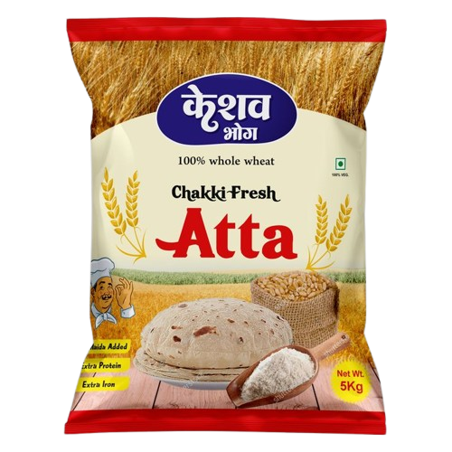 Premium Atta Packaging Pouches designed for durability and hygiene, available in center seal and pillow pouch formats. Manufactured without cylinder using digital printing, ensuring low MOQ, fast production, customizable designs, and excellent protection for flour freshness.