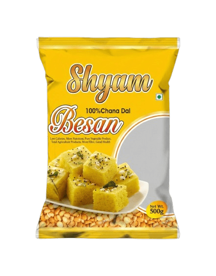 Durable Besan Packaging Pouches designed for safe storage and freshness, available in center seal, pillow pouch, and roll form options. Made with high-quality laminated materials, offering strong sealing, moisture protection, customizable printing, and multiple sizes.