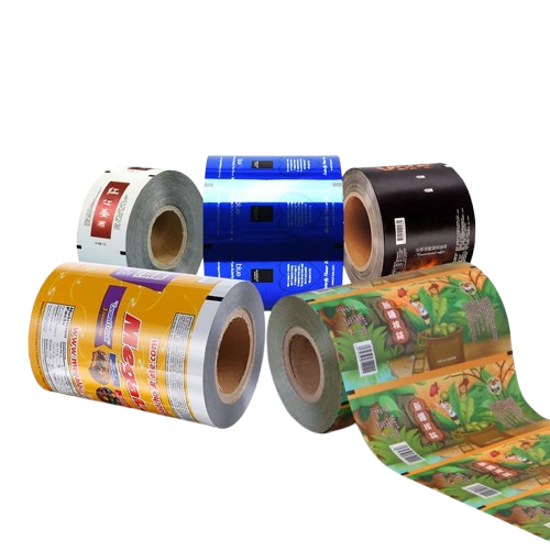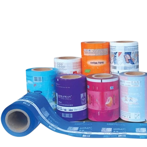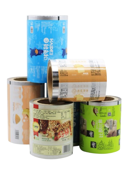 High-quality Printed Rolls made from PET+LDPE+Foil laminated material, suitable for pillow center or side seal packaging. Available in glossy or matte finish, various sizes, with premium gravure printing.