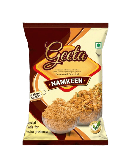 High-quality Namkeen Printed Pouches designed for crispness and freshness, available in center seal, standup, and roll form options. Made from durable laminated materials with vibrant printing, multiple sizes, and excellent barrier protection for extended shelf life.