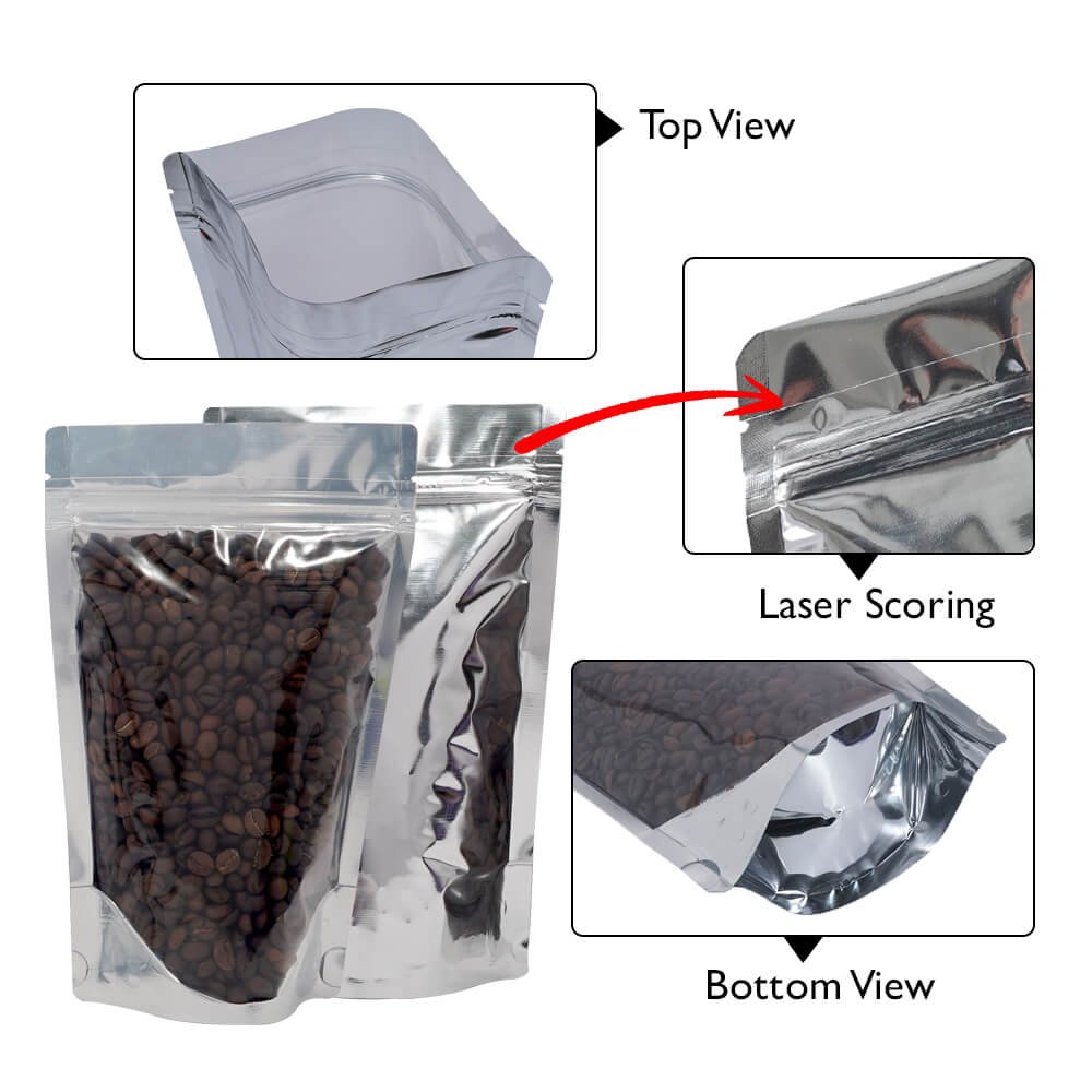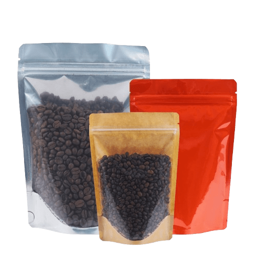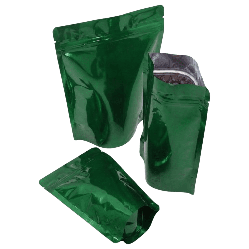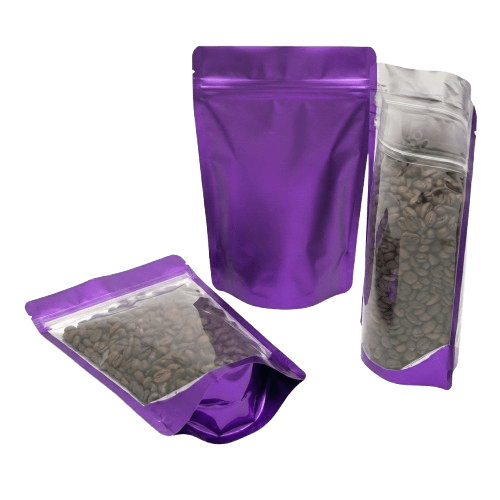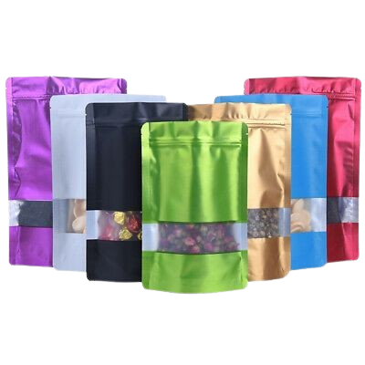 Durable Plain Stand Up Pouches made from PET+LDPE+Foil laminated material, available with zipper closure and window or solid options. Offered in glossy or matte finish, multiple sizes for versatile packaging.